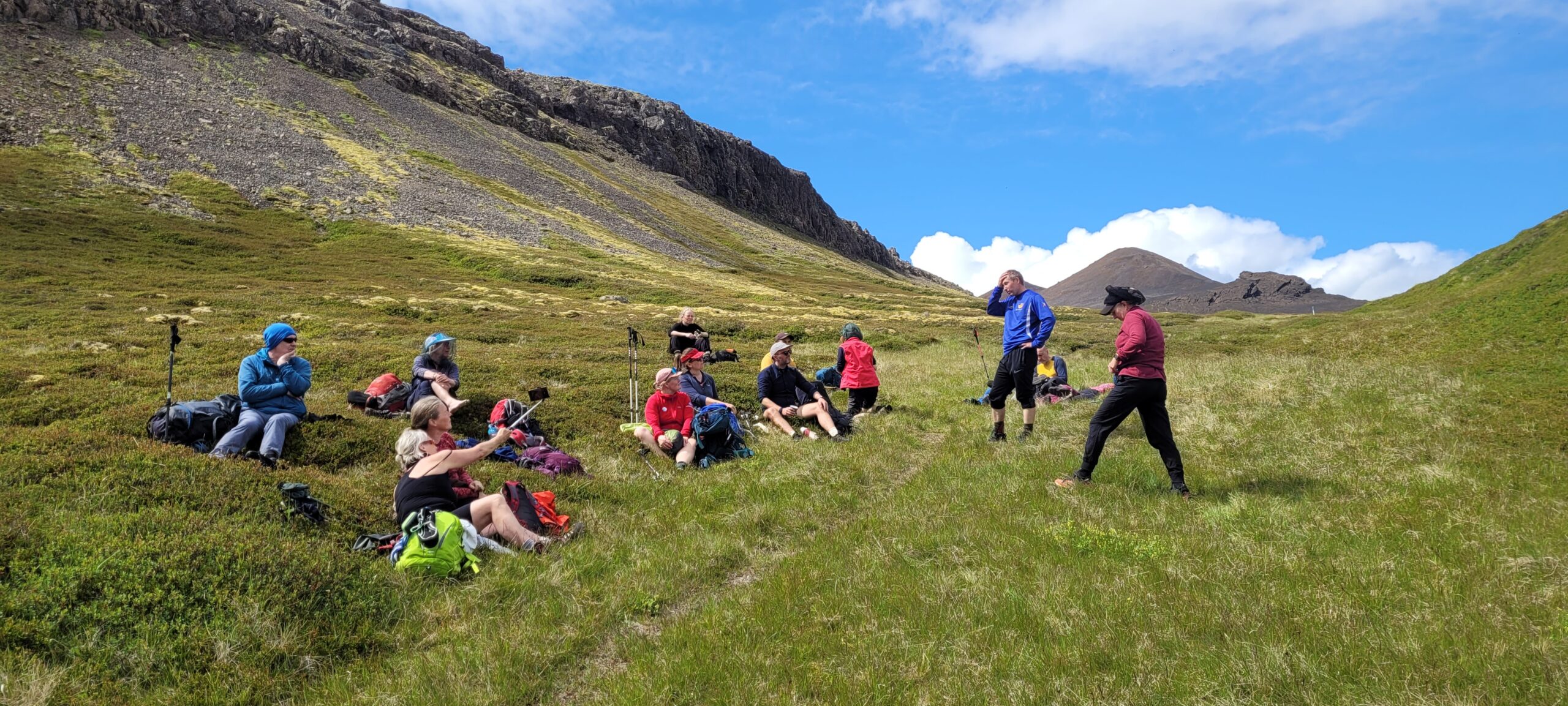- dagur. Gengið frá Hallkelsstaðahlíð upp Hellisdal og um Klifsskarð yfir í Hítardal. Ganga dagsins endar við Hólm, leitarmannahús í Hítardal þar sem verður gist. Gönguvegalengd um 11 km. Hækkun: u.þ.b. 400 m.